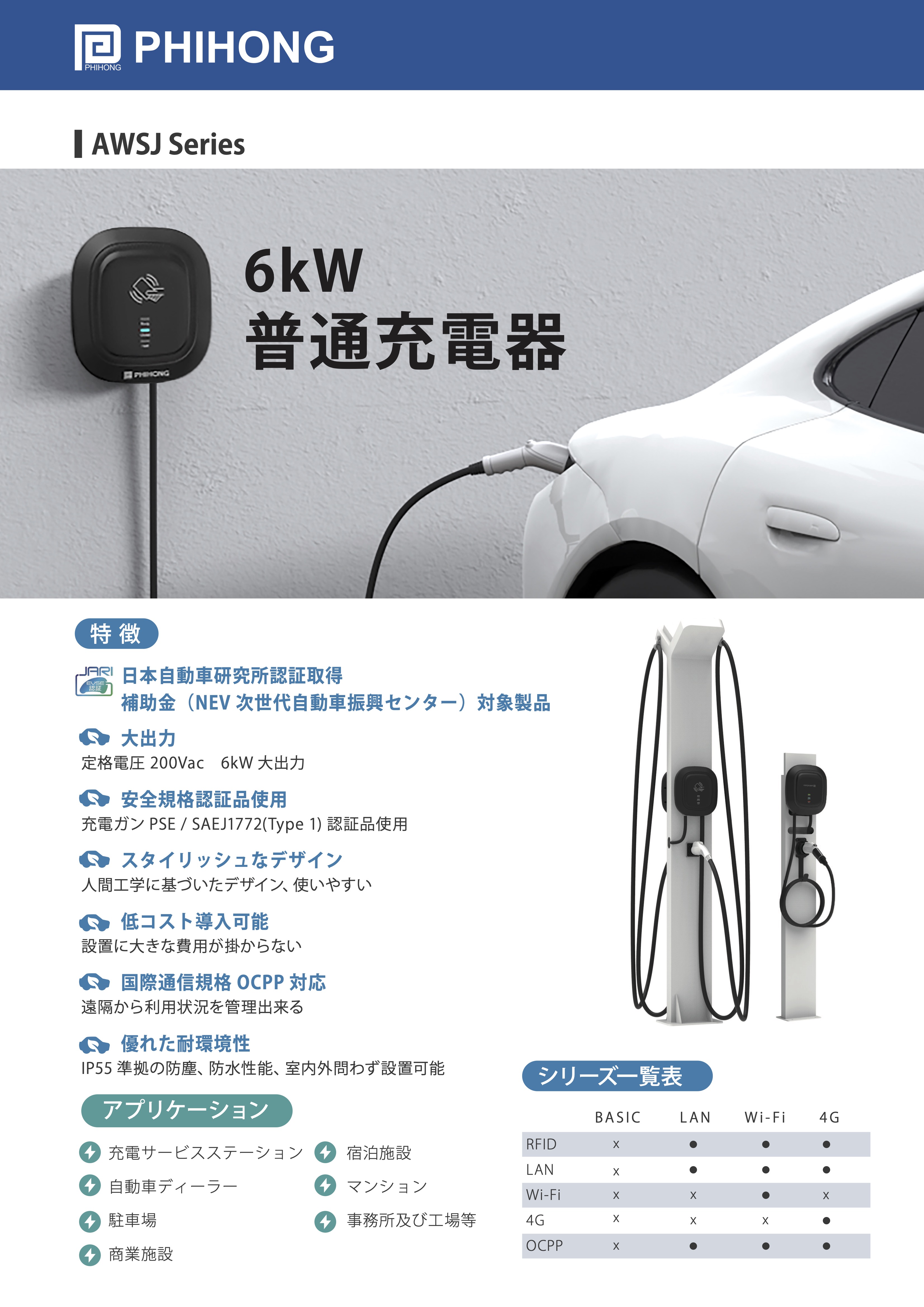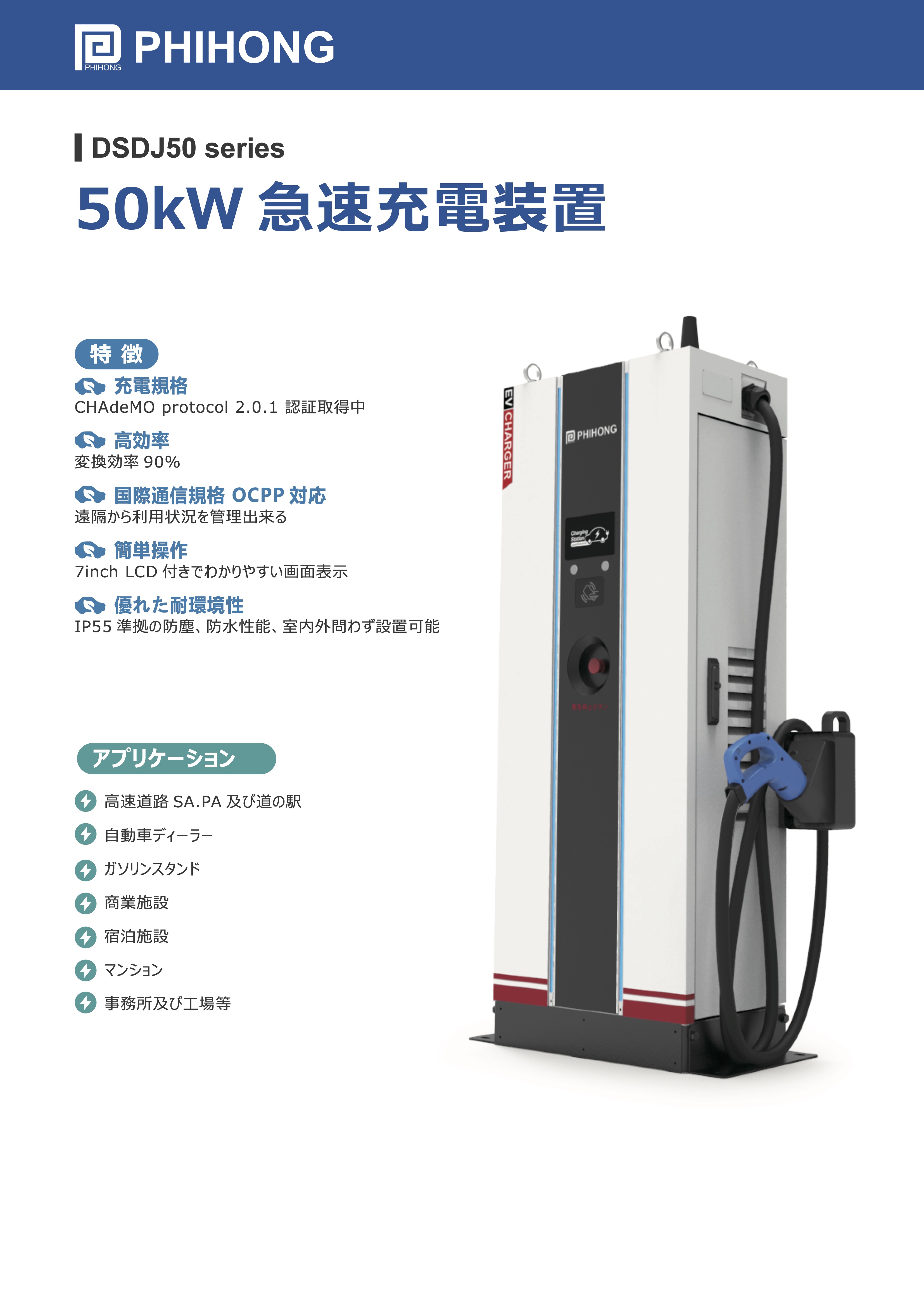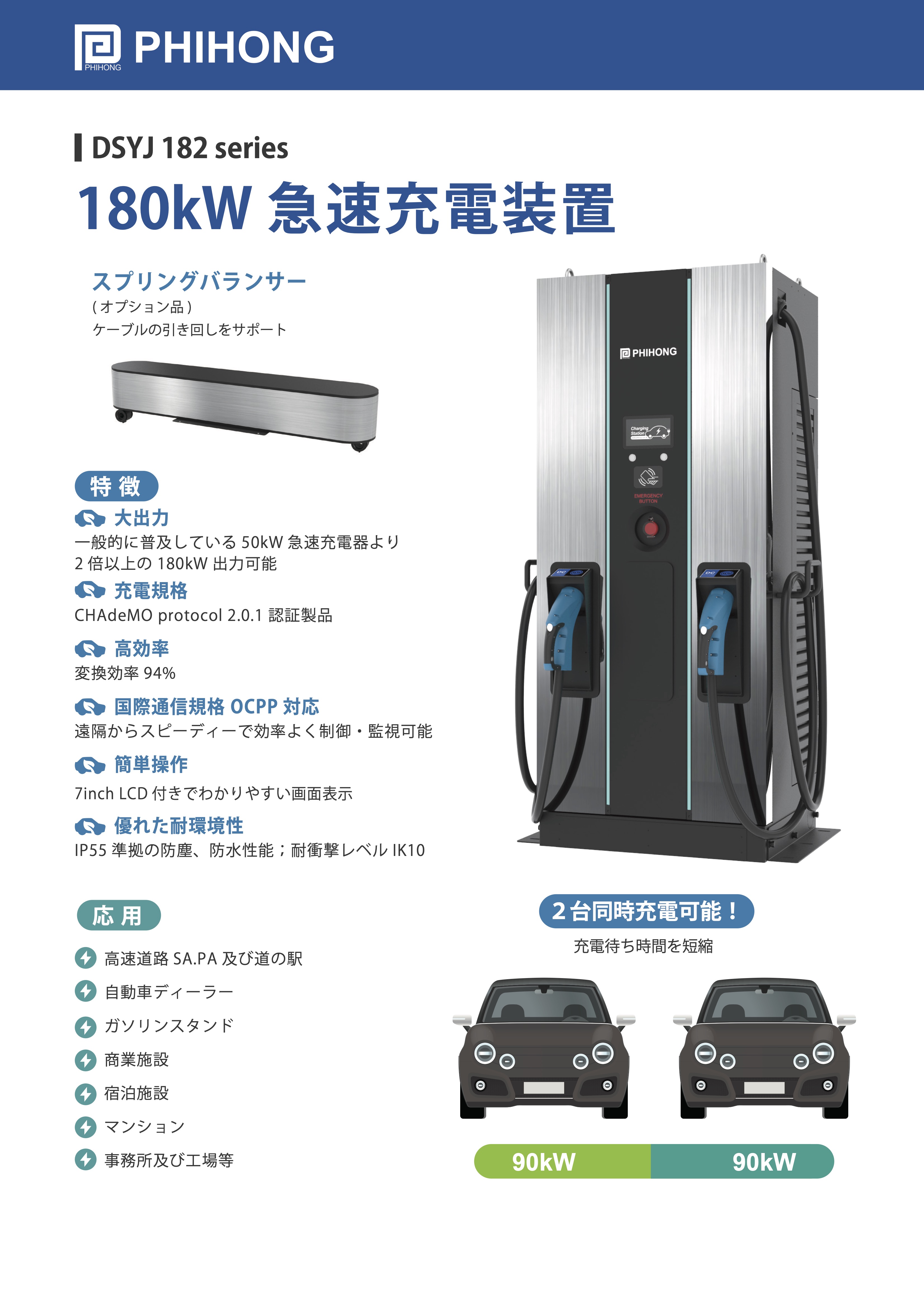 "DSYJ series"は一般的に普及している50kW 急速充電器より2倍以上の180kW が出力可能な急速充電器です。