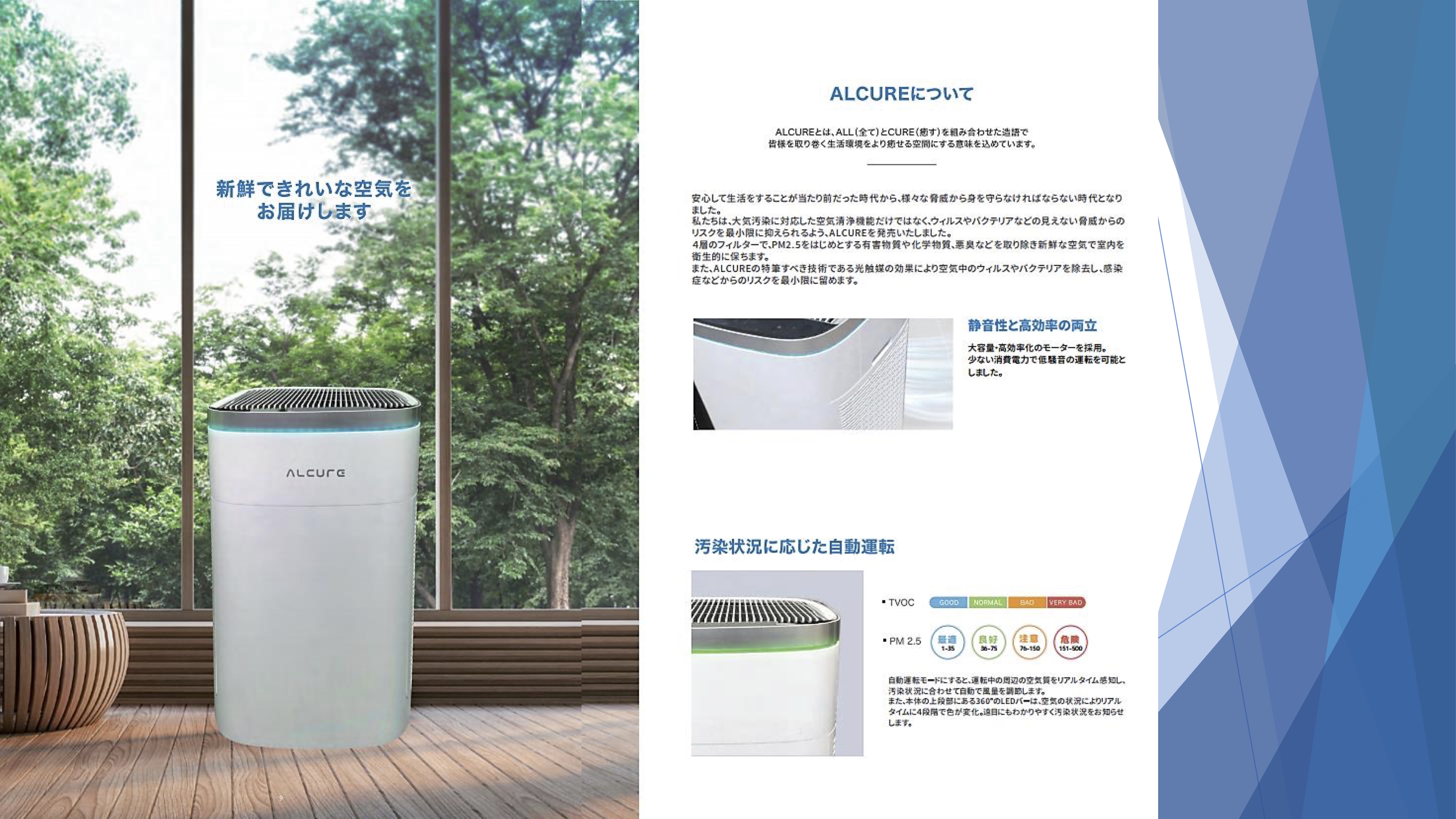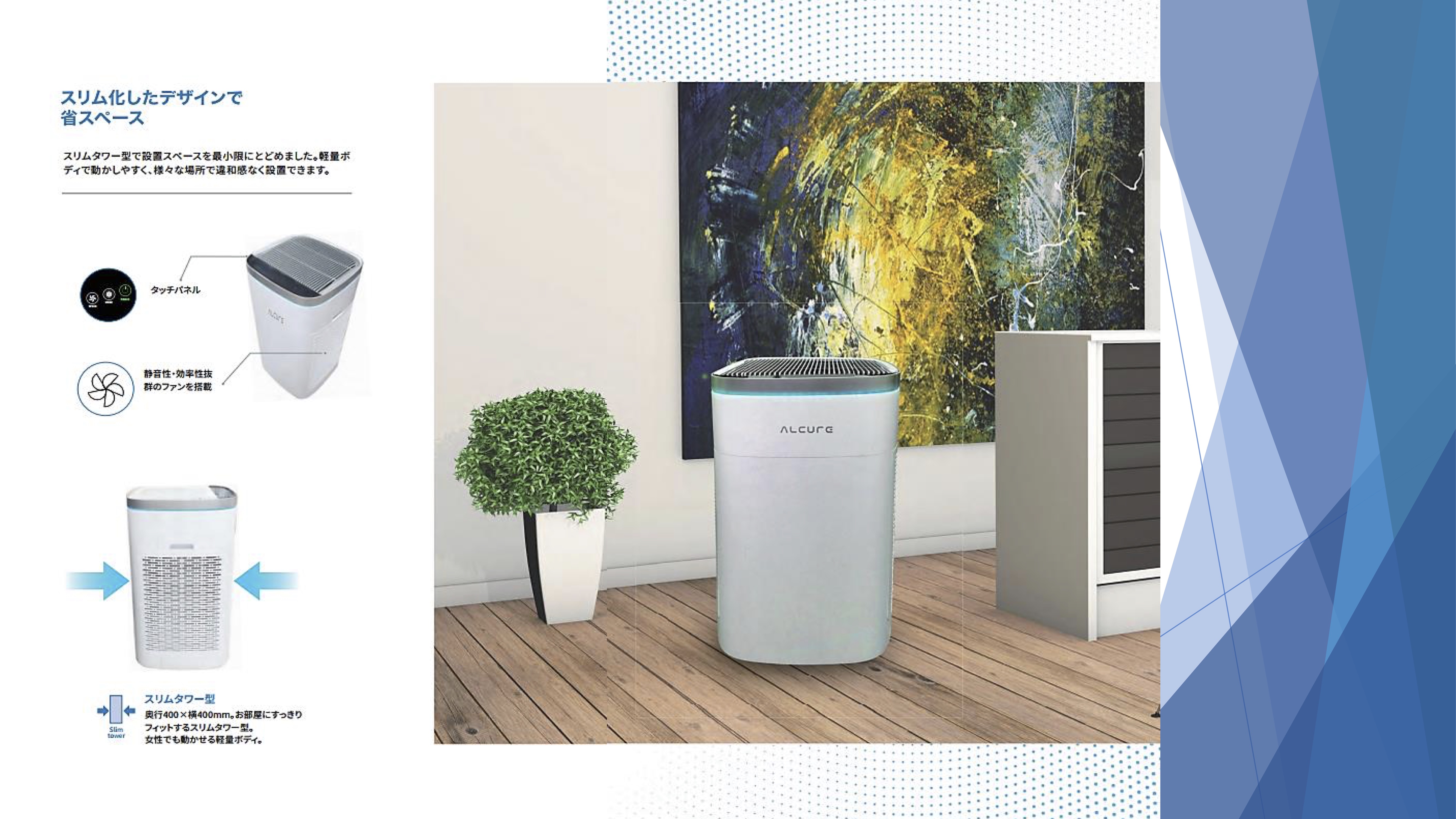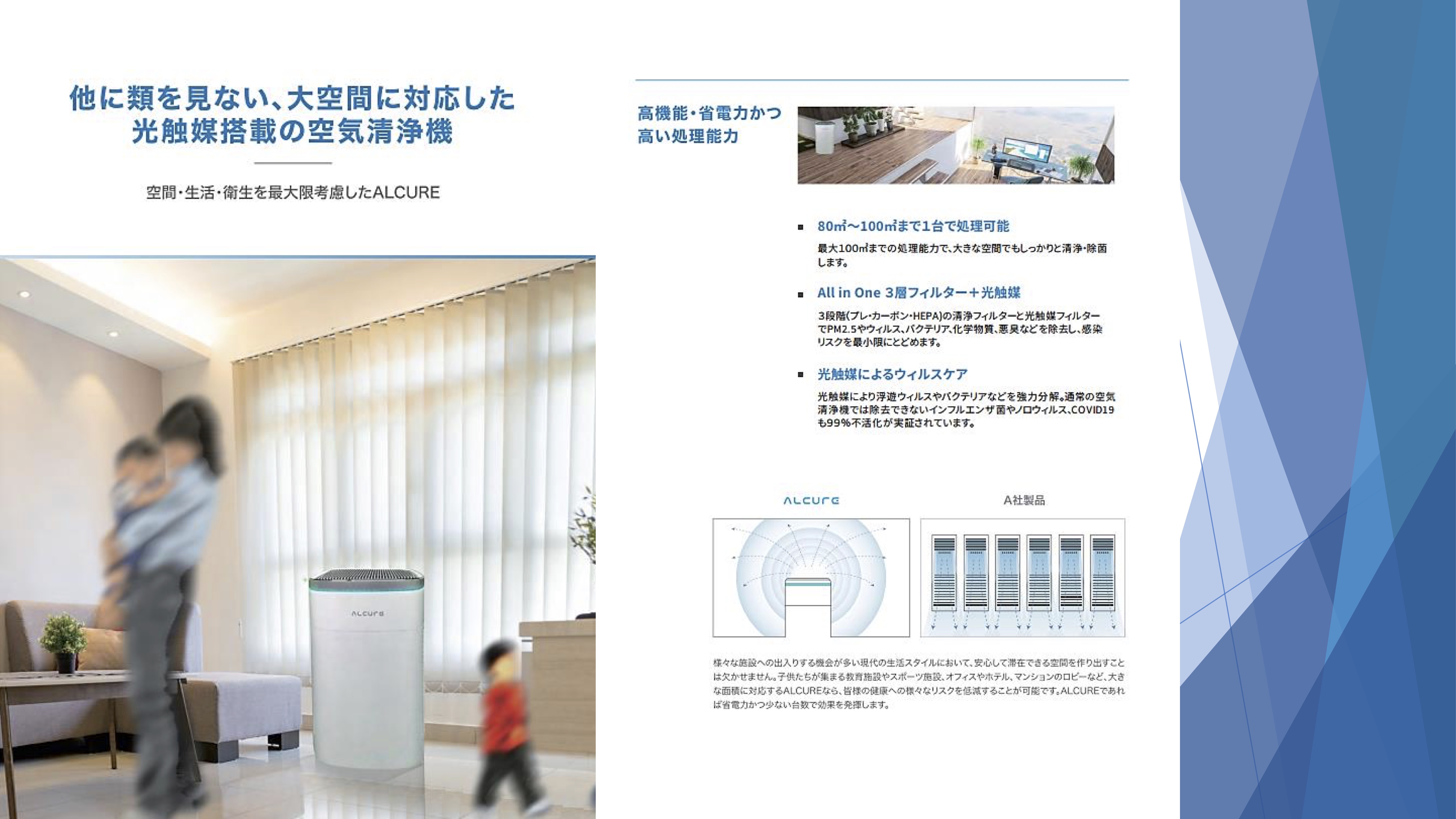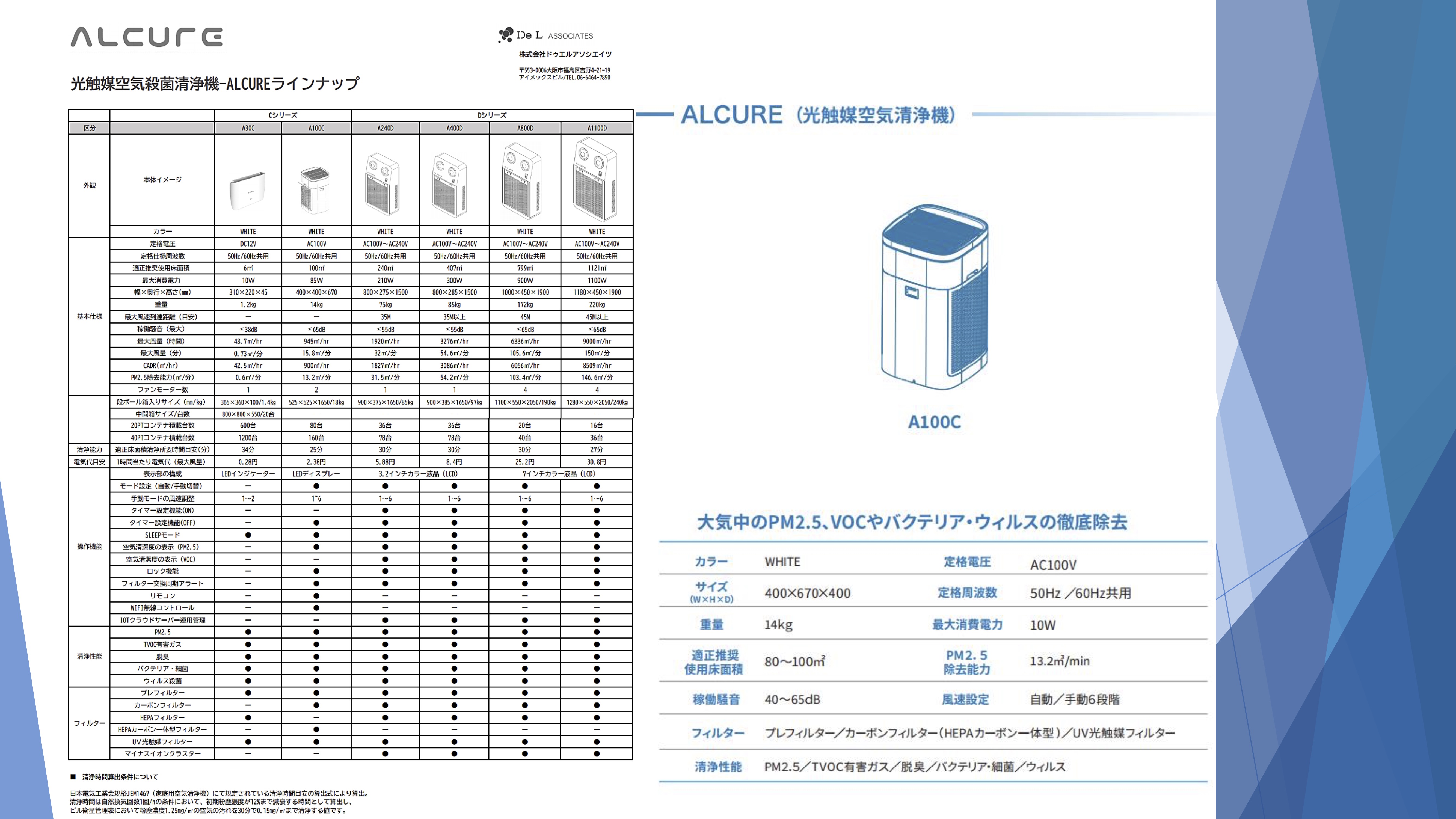 大空間に対応した光触媒搭載の空気清浄機"Alcure A100"