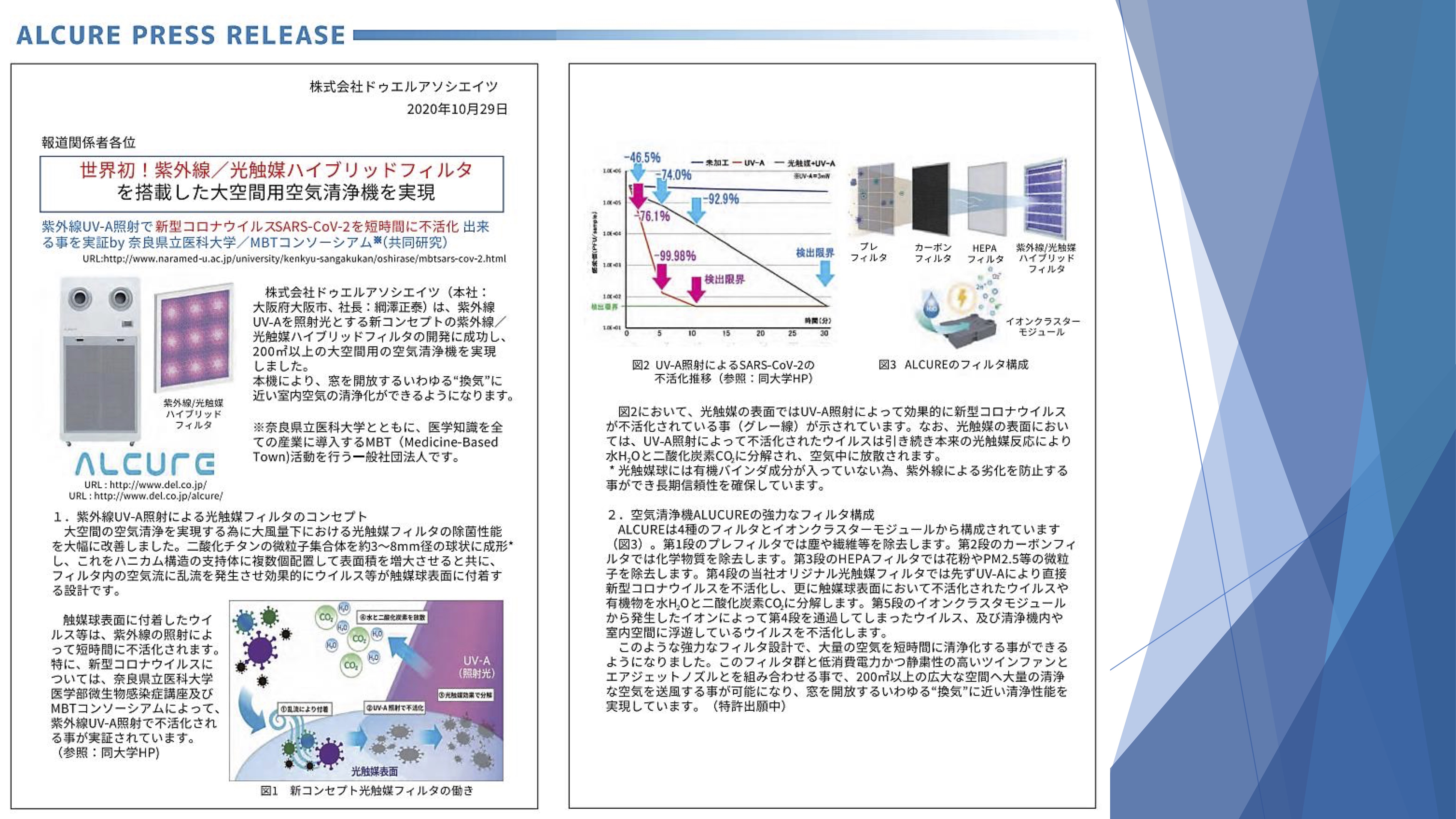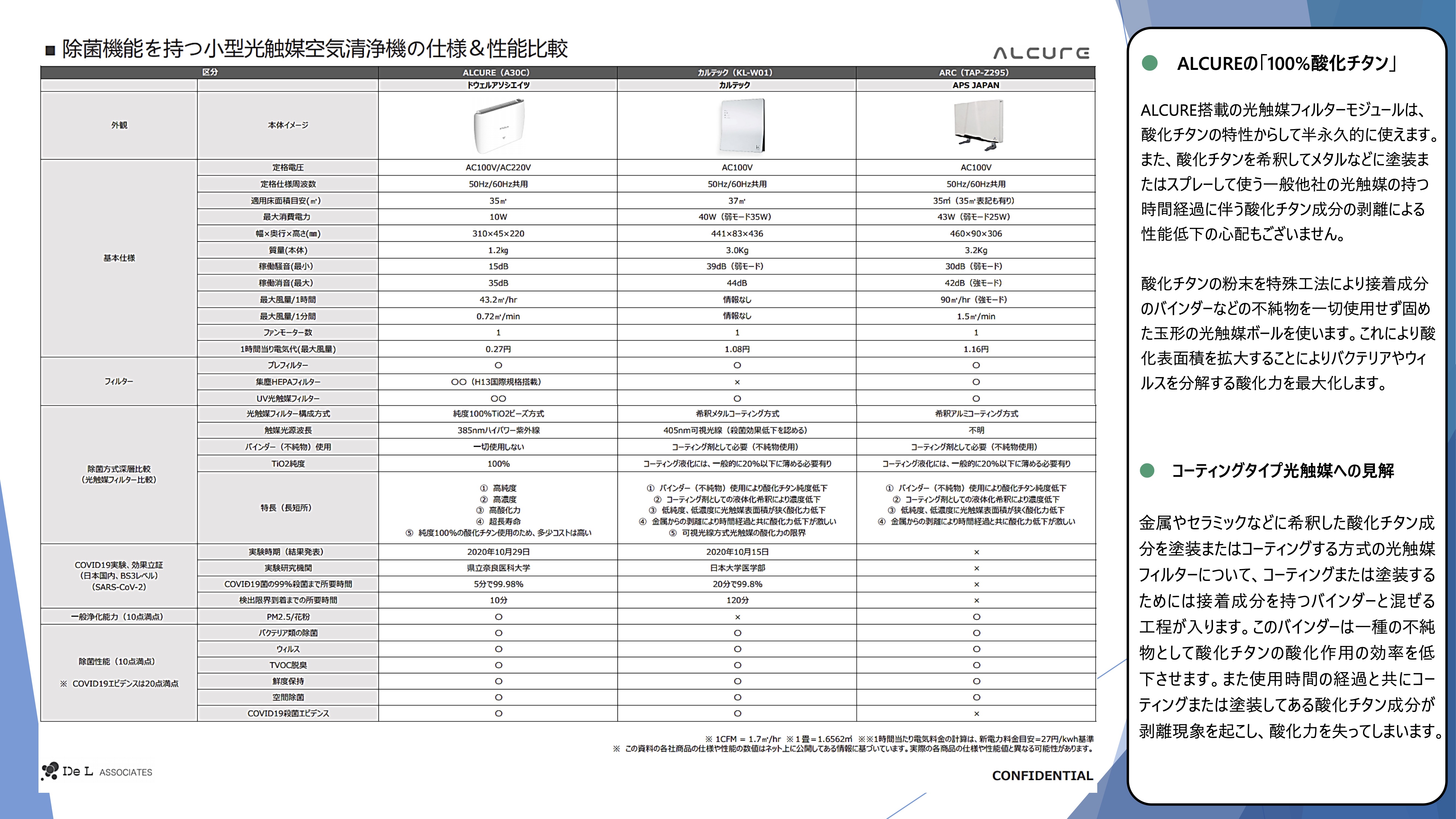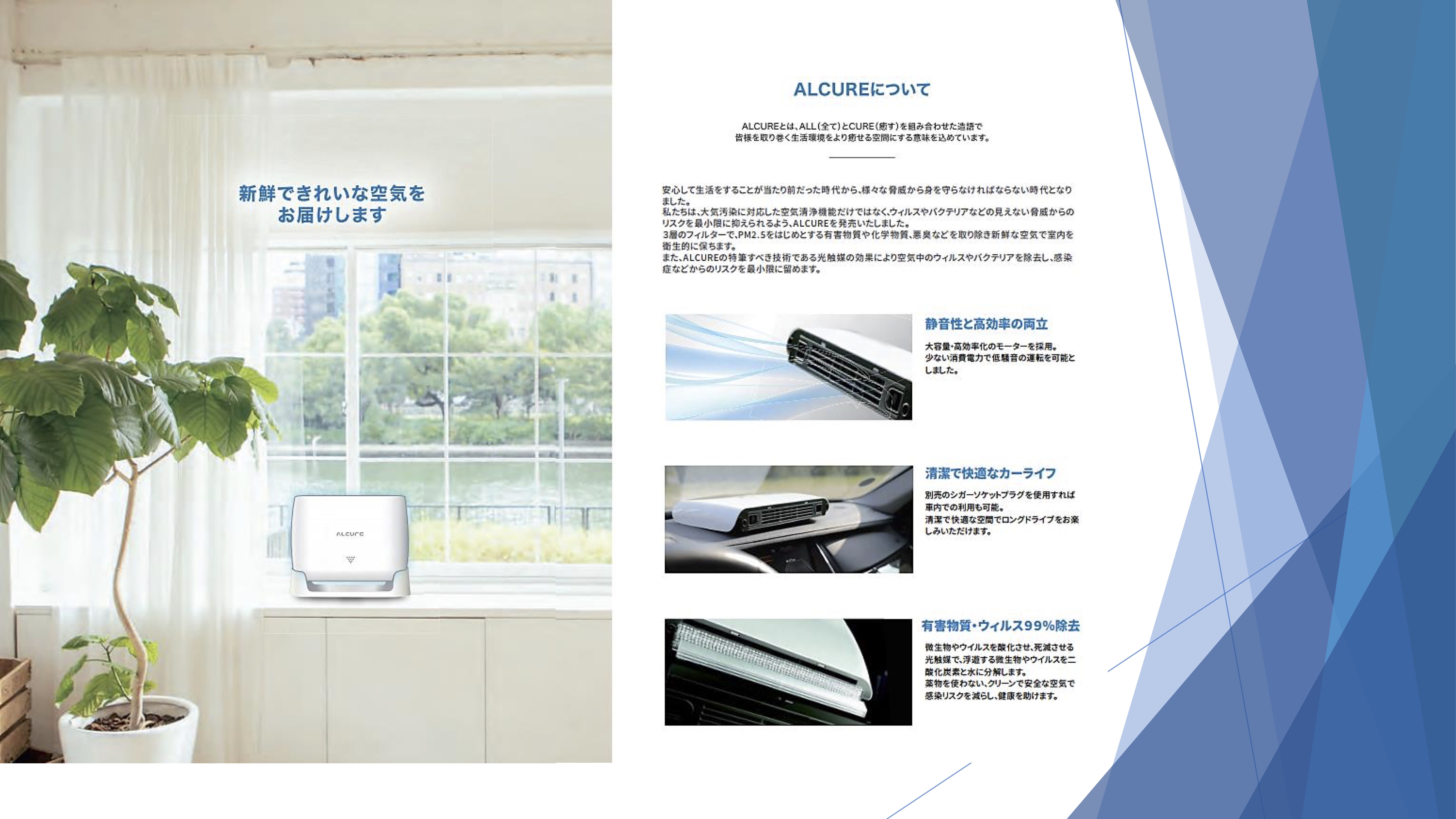 光触媒により浮遊ウイルスやバクテリアなどを強力分解。通常の空気清浄機では除去できないインフルエンザ菌やノロウイルス、COVID19も99%不活性化が実証されています。
