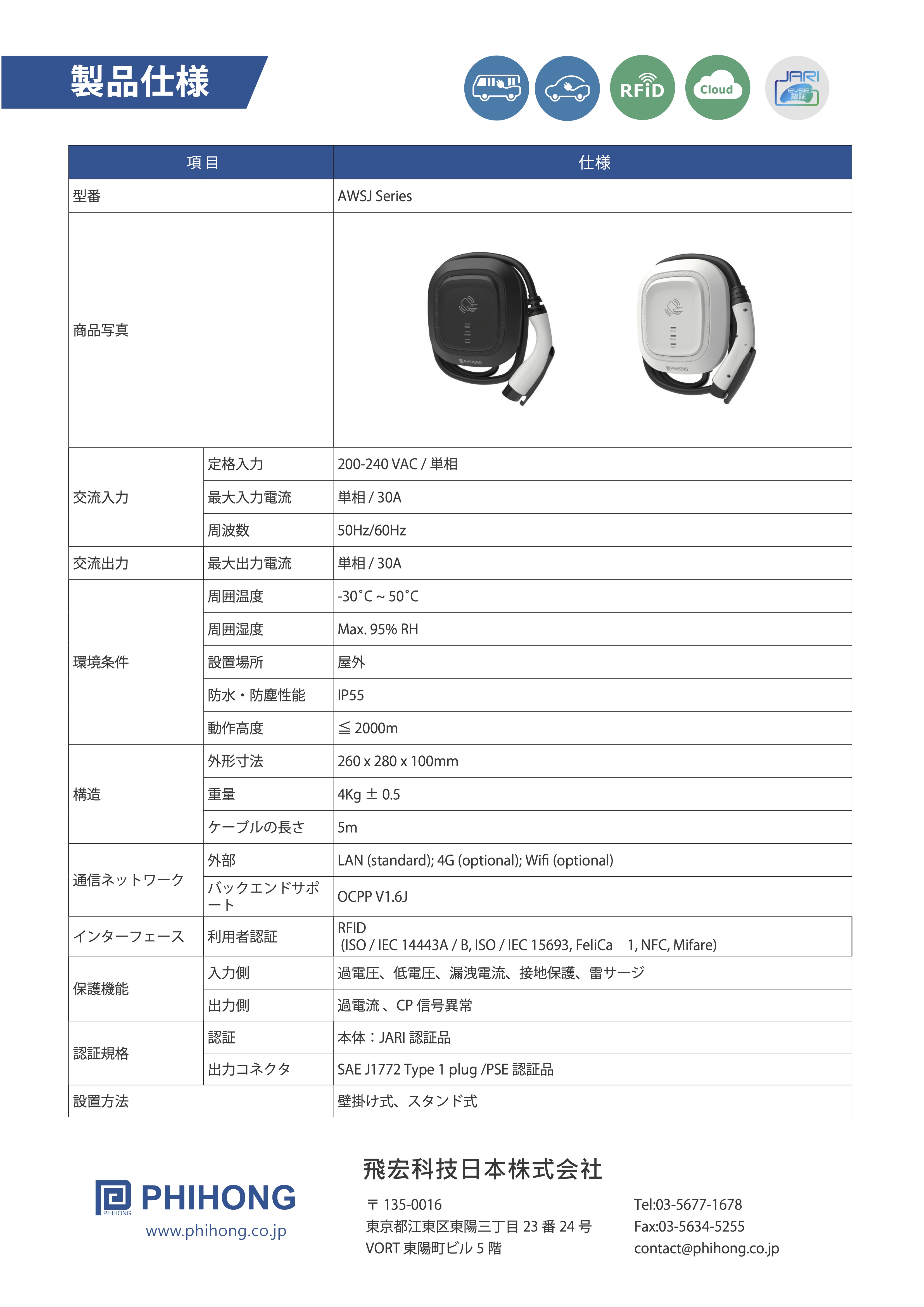 | 出力コネクタ | SAE J1772 Type 1 plug /PSE 認証品 | |